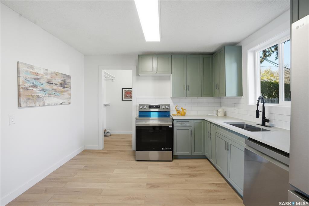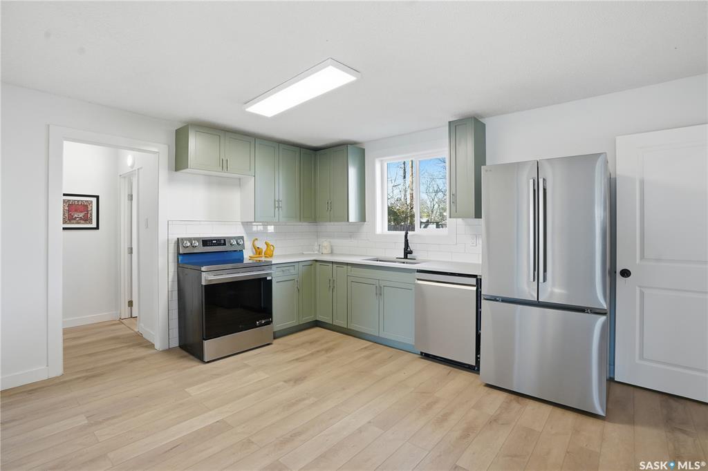 Newly renovated 914 sq ft bungalow in Caswell Hill! Featuring double garage on the back, brand-new kitchen cabinets, all appliances, flooring, windows, furnace, and hot water tank. The main floor offers two bedrooms, a full modern bathroom, and a spacious living and dining area. Large windows on all sides allow abundant natural sunlight to pour in, creating a bright, welcoming space and warming the home throughout the winter. The basement has a separate entrance and includes two self-contained units: Unit A...