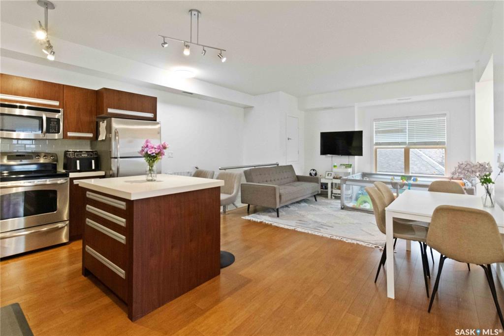 Welcome to 202-1015 Patrick Cres. This top floor condo in the popular Ginger Lofts complex has one of the best locations - right next to the clubhouse with a sunny, West facing view. The 954 sq ft, 2 bed, 1 bath condo was recently painted and is in great condition. The open floor plan features a large living room with door to your West facing balcony, a functional kitchen with island and lots of cabinet space, 2 bedrooms and a 4 piece bath with soaker tub and storage in the mechanical room. The clubhouse is...