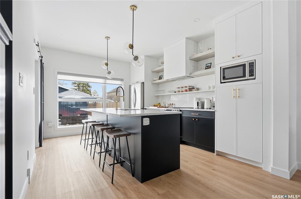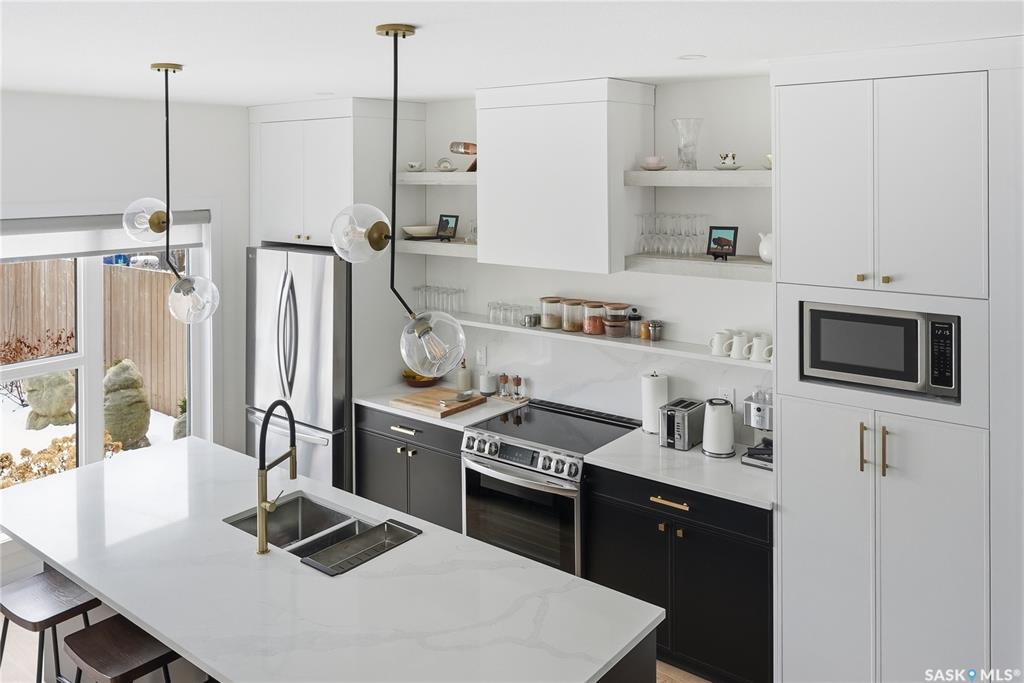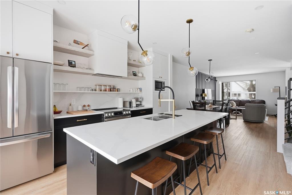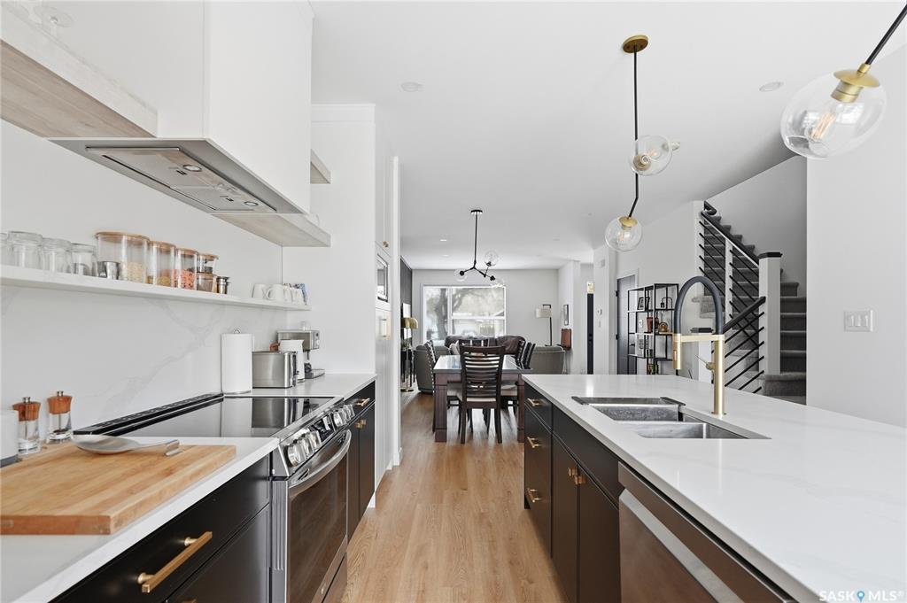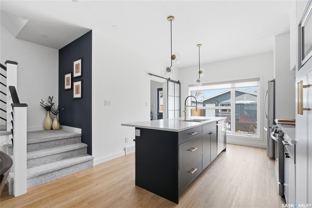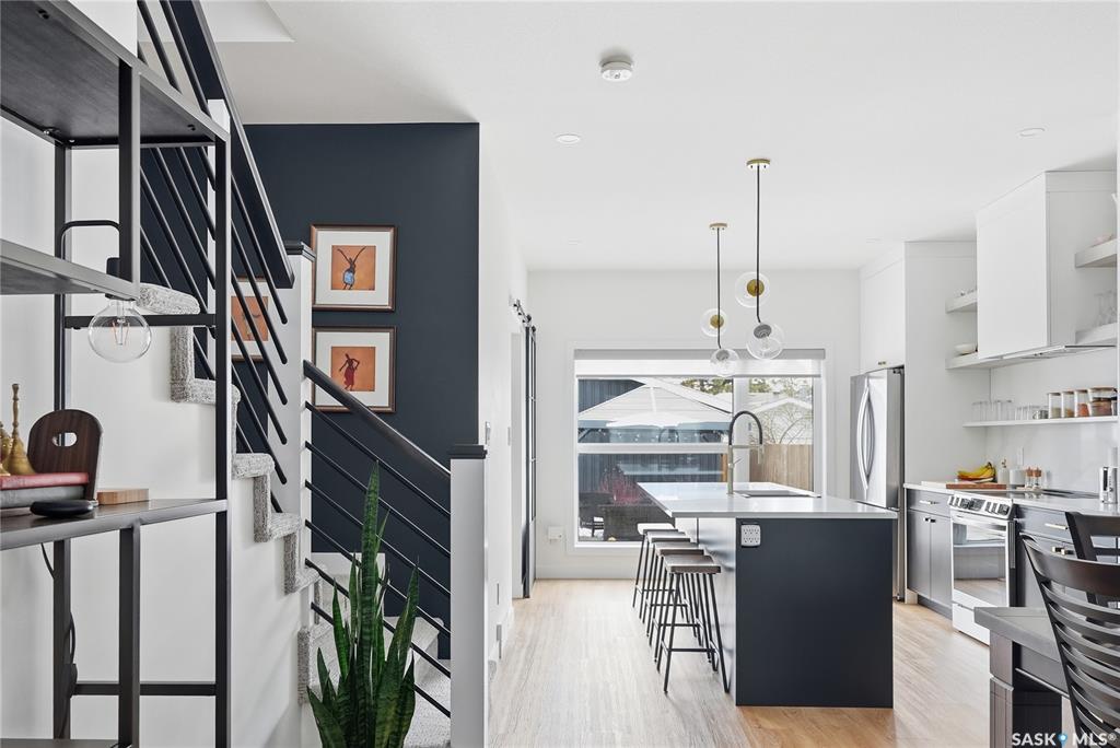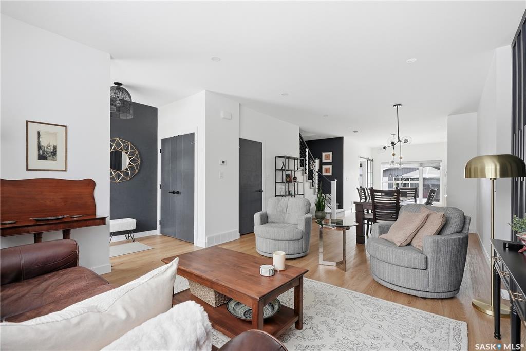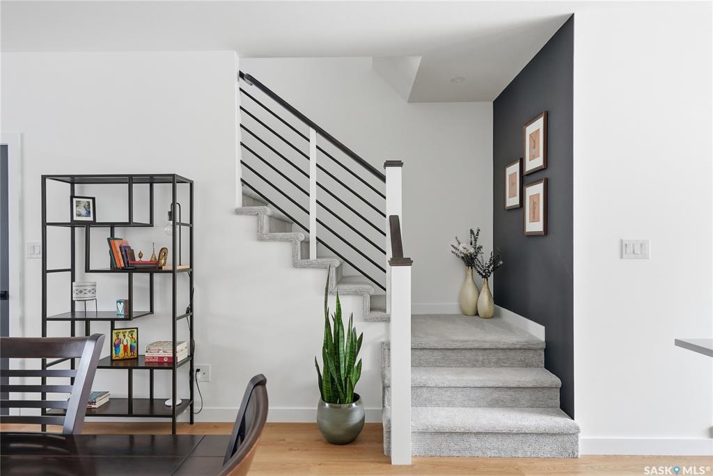 Mint Condition on this functional 2 Storey with 3 bedrooms. 2.5 baths - only minutes to Meewasin Trail & River. Revenue potential with direct entry if desired. Bright open main floor greets you as you enter. The west-facing living room permeates lots of sunshine. The dedicated dining room is perfect for family gatherings. The kitchen features designer cabinetry with a functional Island complimented with quartz countertops, soft-close cabinetry, and some open shelving with a Large window overlooking a profes...