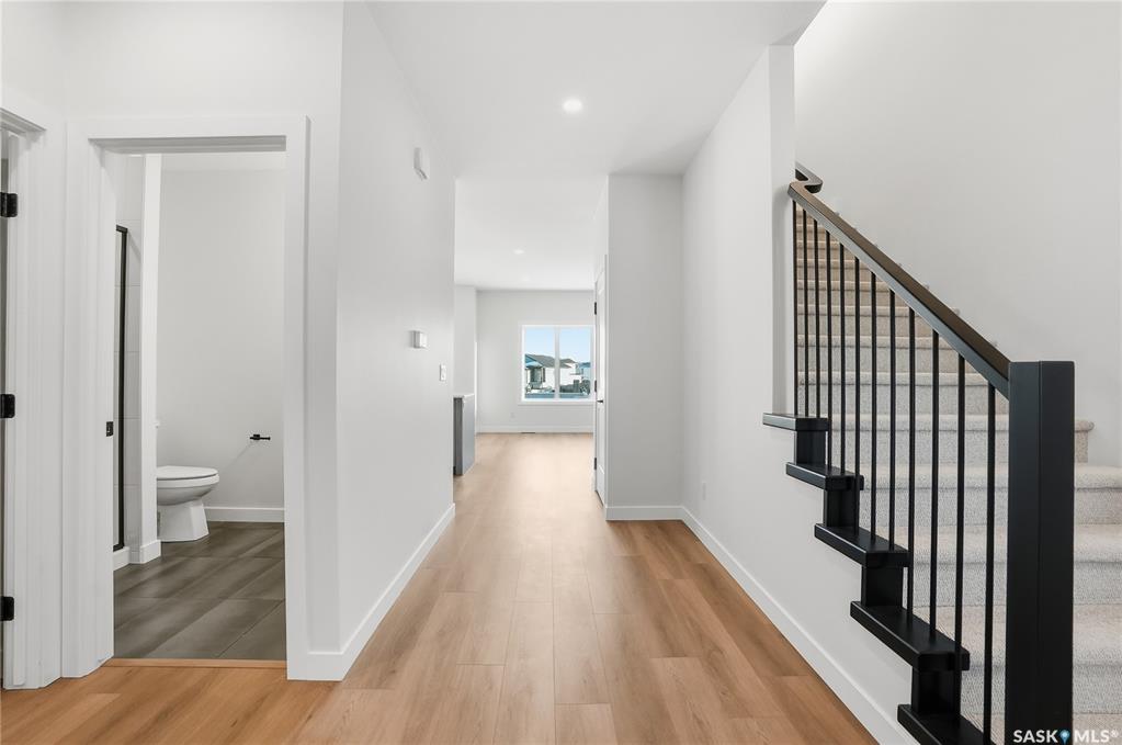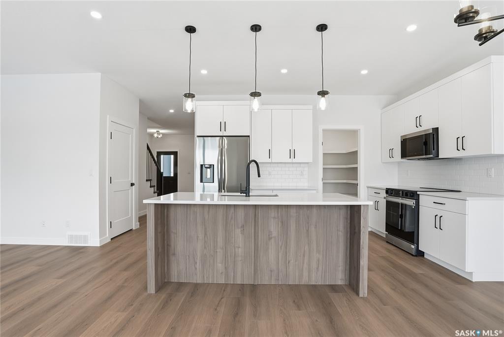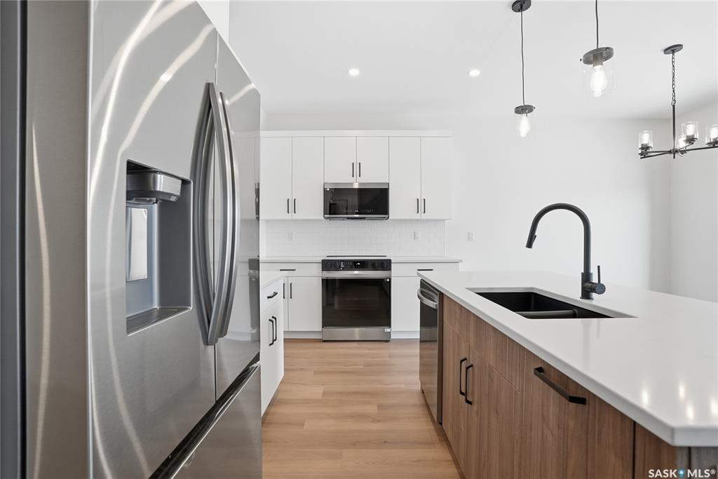 Modern 1,966 sq. ft. two-storey home featuring a rare main-floor bedroom and 3-piece bathroom, ideal for guests or multi-generational living. This 4-bedroom design offers 9’ ceilings on the main level, laminate flooring throughout the main and second floors, and ceramic tile in bathrooms with tiled shower surrounds. The kitchen showcases a large quartz island, subway tile backsplash, soft-close cabinetry, walk-in pantry. Upstairs includes additional bedrooms and a well-appointed ensuite with double sinks, s...