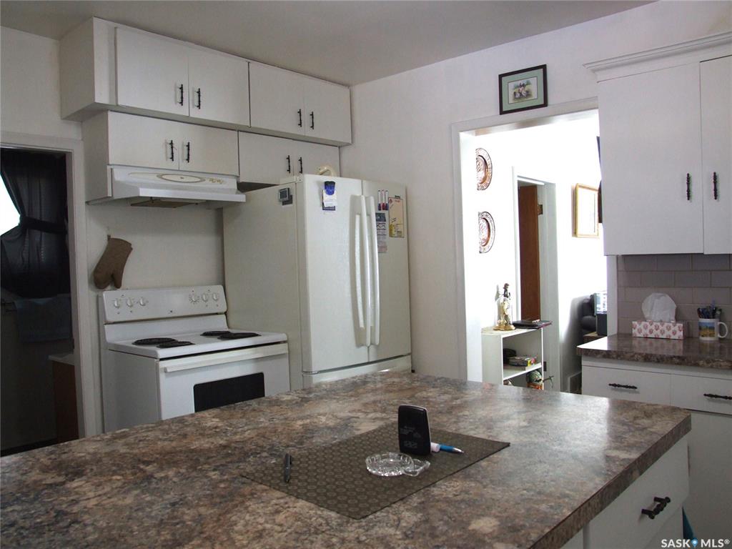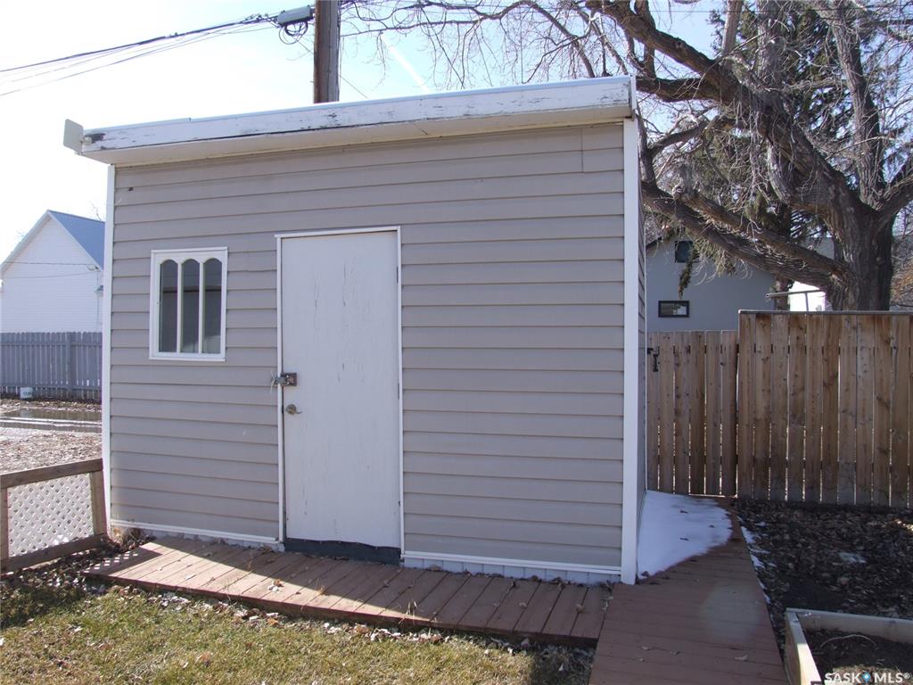 This home is located in Leader, SK. and is within walking distance to many amenities. Just a short walk to the pool, park, library, shopping, post office and friendship centre. The yard is partially fenced and has a large garden spot and both grassed and treed areas, The garge at the back would make a nice worshop for the handy guy in the house. The carport and the garage are both great places to park your vehicle out of the elements. There is also a very nice shed at the back of the yard and one at the...