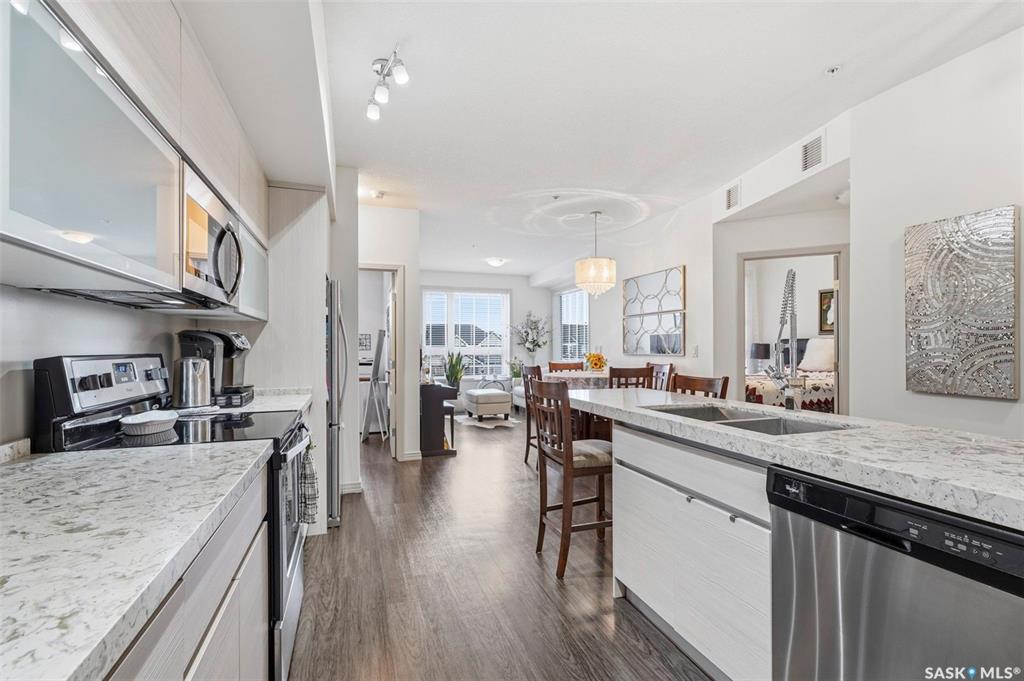 Very well cared for condo in Sequoia Square! This impressive 2-bedroom, 2-bathroom residence features 10-foot ceilings and oversized windows that flood the space with natural light. The open-concept floor plan is beautifully finished and includes in-floor heating throughout for year-round comfort. The kitchen is beautifully designed with quartz countertops, soft-close cabinetry, stainless steel appliances, and seamless flow into the dining and living area. The primary bedroom is a true retreat, has large wi...