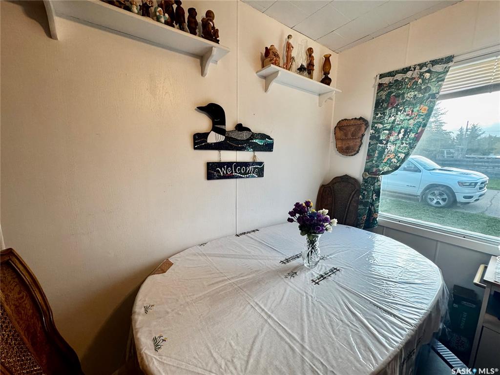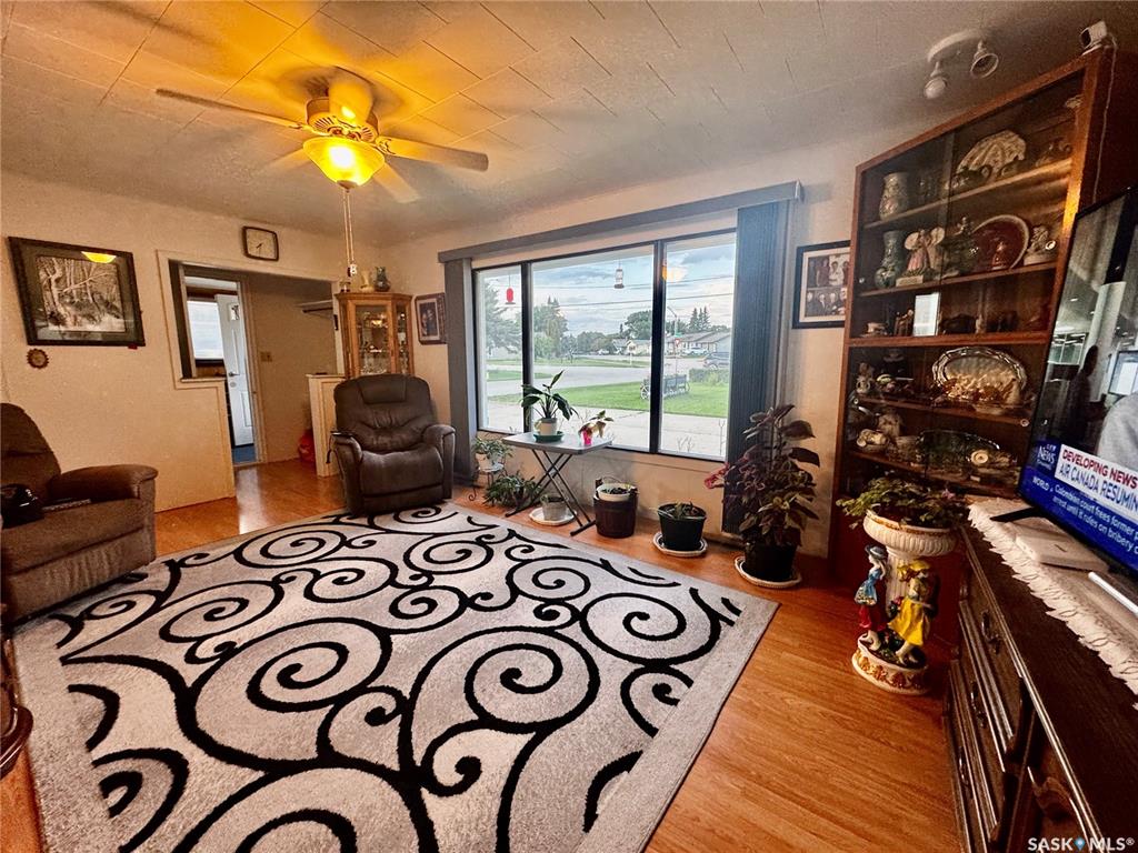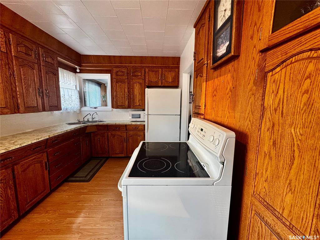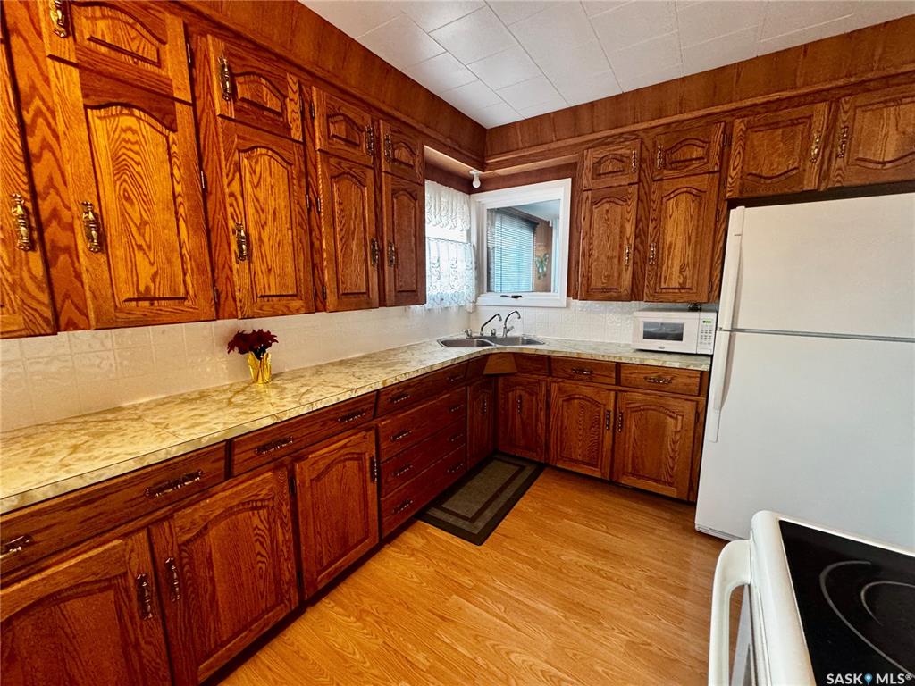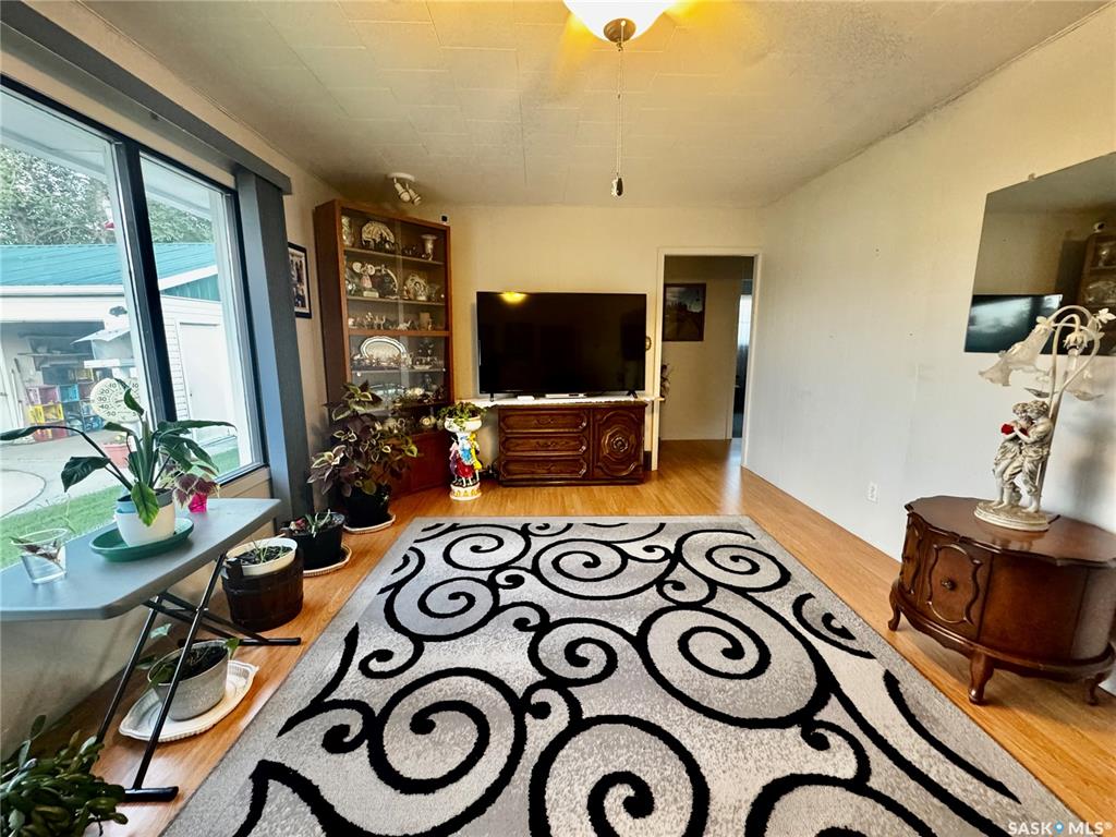 An affordable well kept home with an extra large 3 car garage awaits you in the town of Sturgis SK! Driving up to the property you will be welcomed to a concrete drive way that leads to detached garage. There is lots of room to store your vehicles, quads, snowmobiles, etc. The garage is fully insulated with metal roofing. Entering the home, you will be welcomed to a separate porch area. A few steps will take you into the large living room area. Around the corner is the kitchen with included fridge and stove...