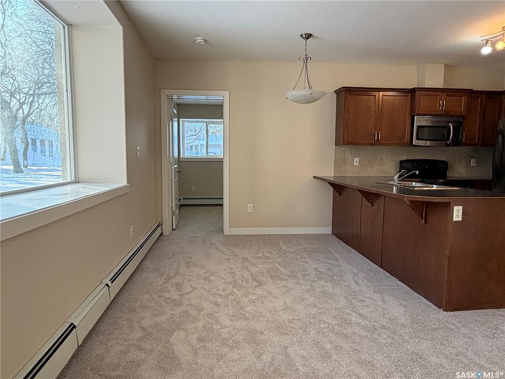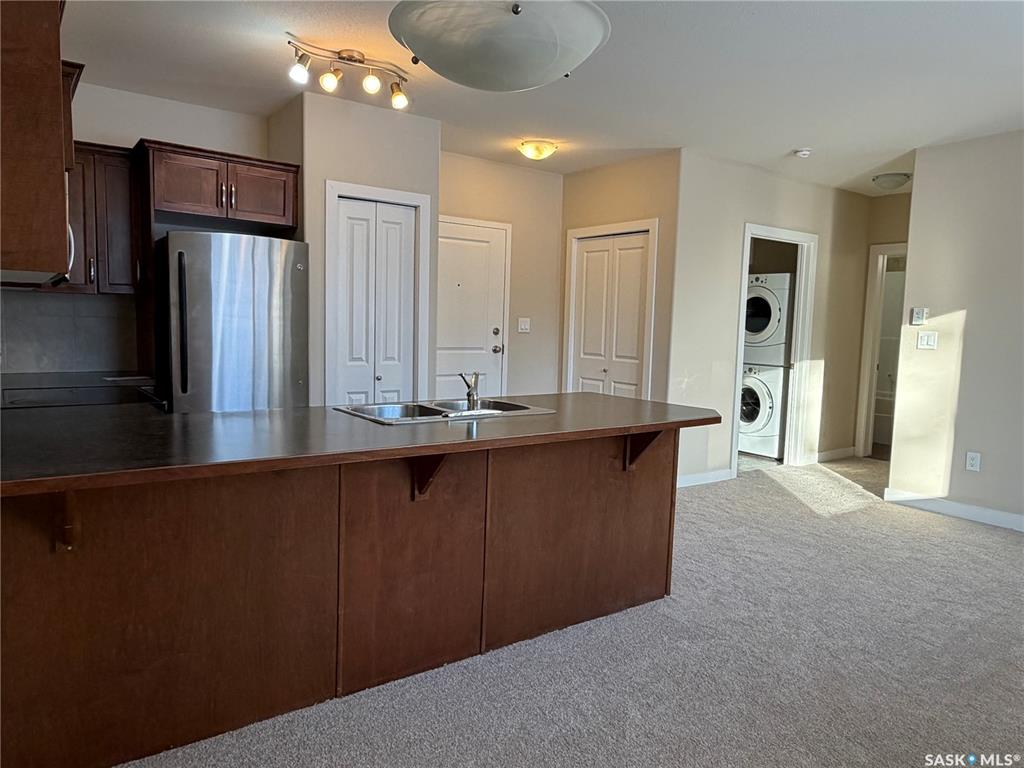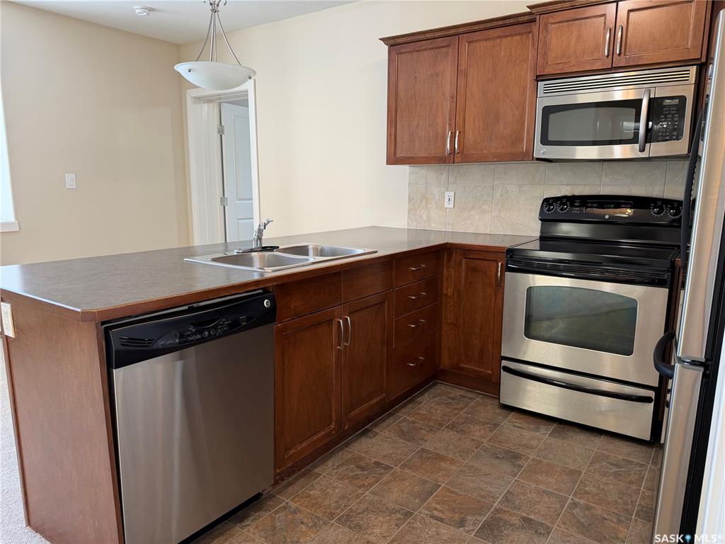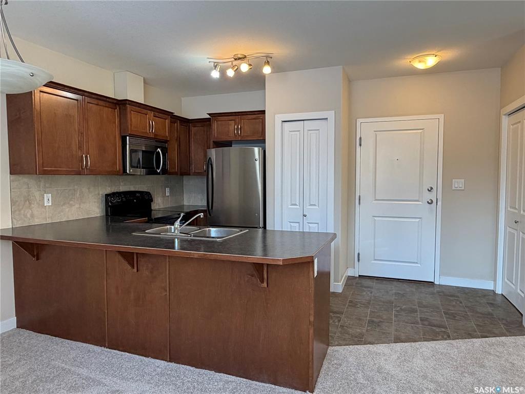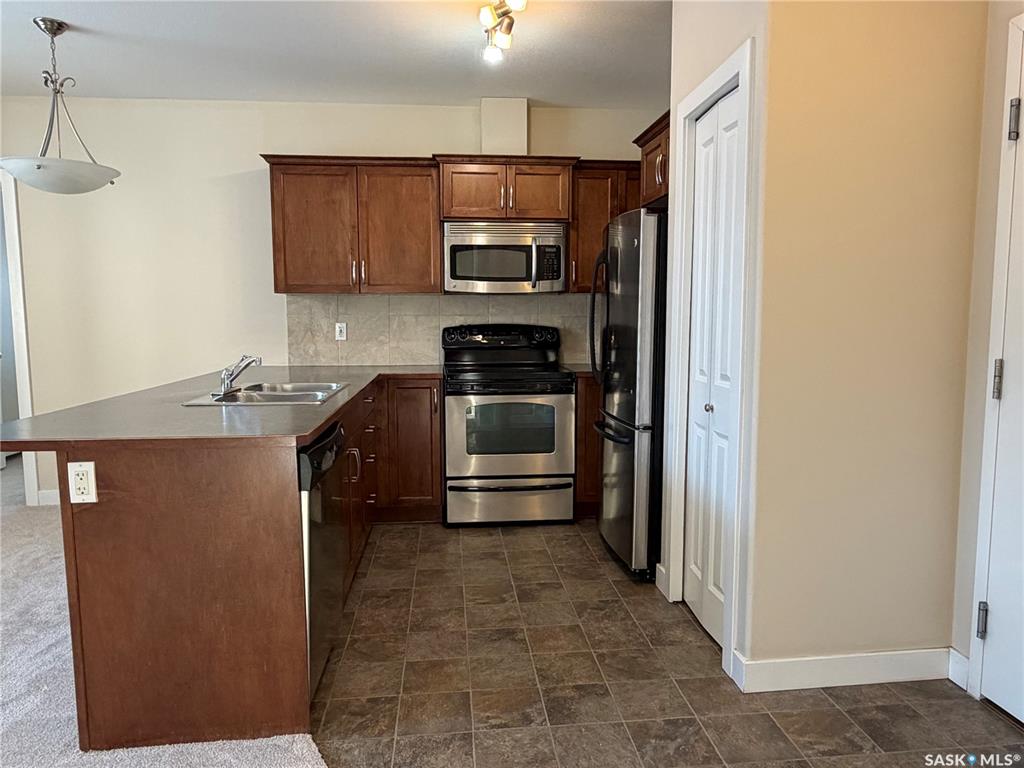 Two bedroom condo unit located in Bemister Place Condos on the East side of Melfort, located close to schools, parks & Parkland Place! This unit faces East, viewing the greenspace that has a covered patio with benches and tables for socials. Shaker style, maple, cabinets provides an abundance of counter space with overhang for stools, if desired. Includes fridge, stove, dishwasher & microwave. Laundry room includes washer & dryer. Main bedroom of the two, offers double closets. Full bath. This unit is locat...