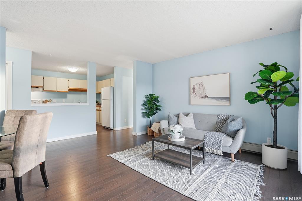 Welcome to #302-375 Kingsmere Boulevard in Lakeview, Saskatoon. This top floor corner unit offers modern living in a central location. It’s a great investment for first time buyers, investors, those downsizing or seeking maintenance-free home ownership. Laminate flooring spans throughout the entire home (no dusty carpets here!), along with fresh paint, and neutral finishes. The kitchen includes lots of countertop area for prep, and plenty of cupboard space. The dining area nestles perfectly next to the livi...