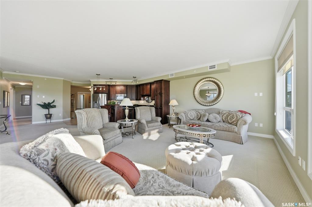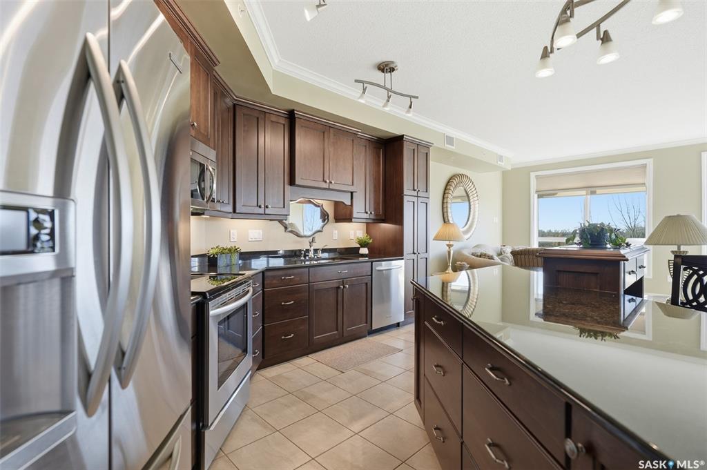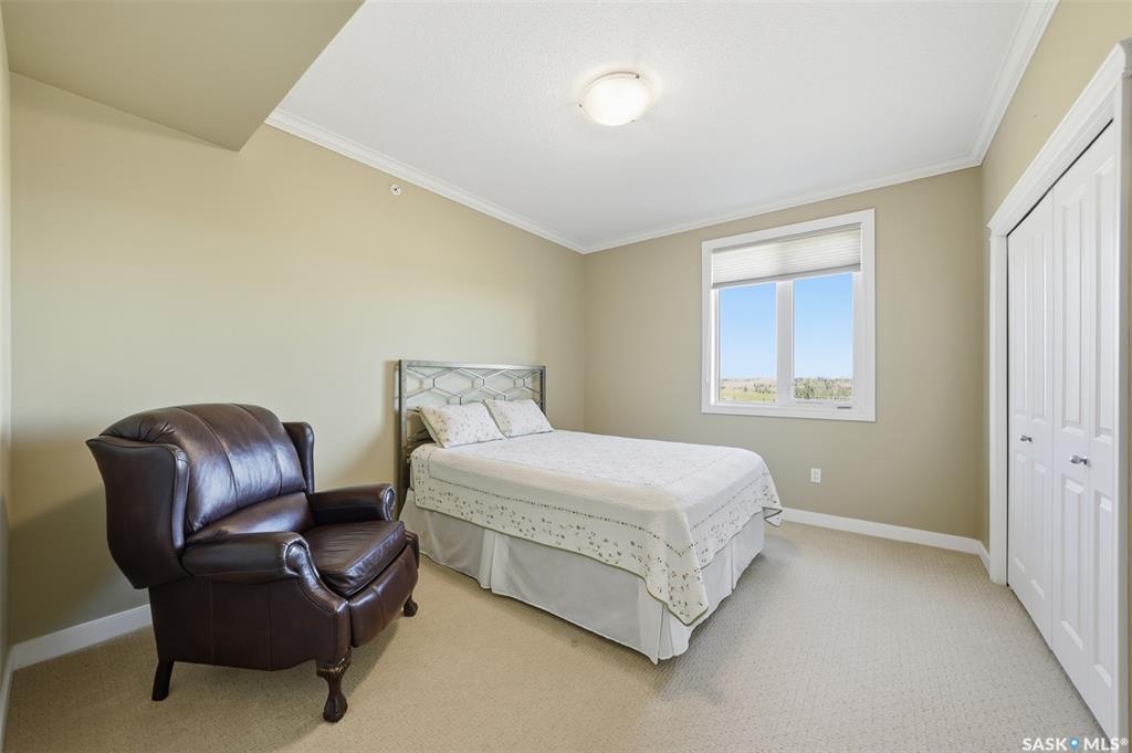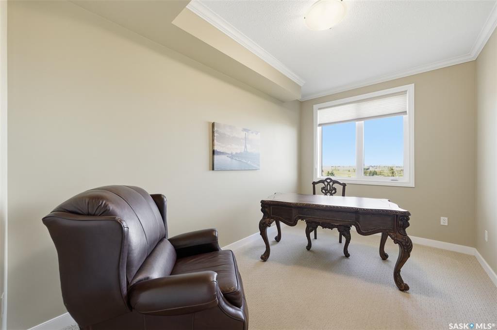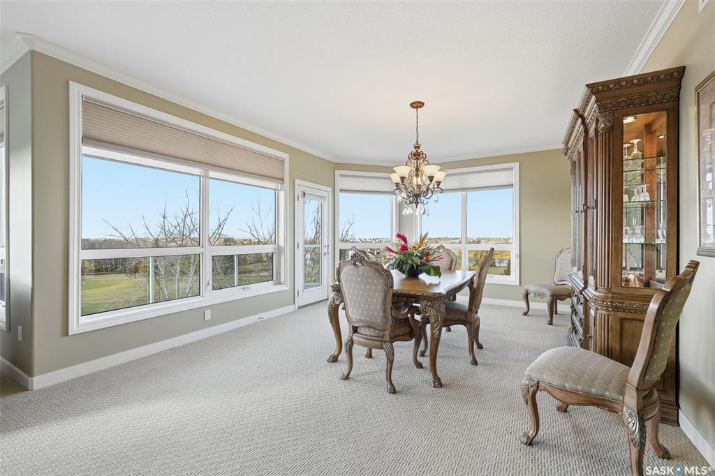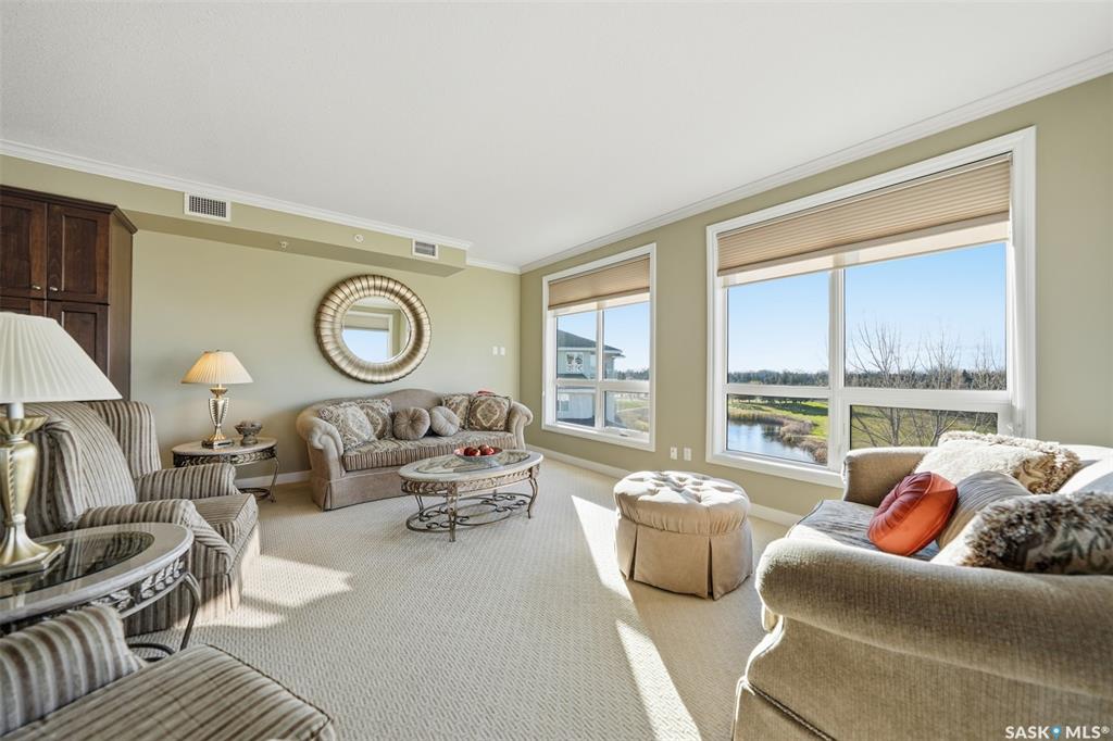 Welcome to luxury living at The Willows - Saskatoon's premier golf course community. This top floor corner unit boasts 1,854 sq.ft. with a spacious open floor plan. Soaring wall to wall windows let in natural light from the north and west sides of the building, and the wrap-around balcony showcasing beautiful views of the golf course and community. Features include custom cabinetry, granite countertops, crown mouldings, and in-floor heat. Three bedrooms (one ideal as an office). The primary bedroom offers...