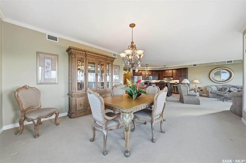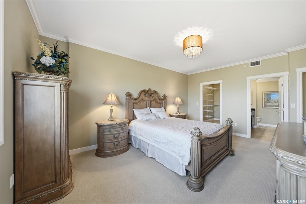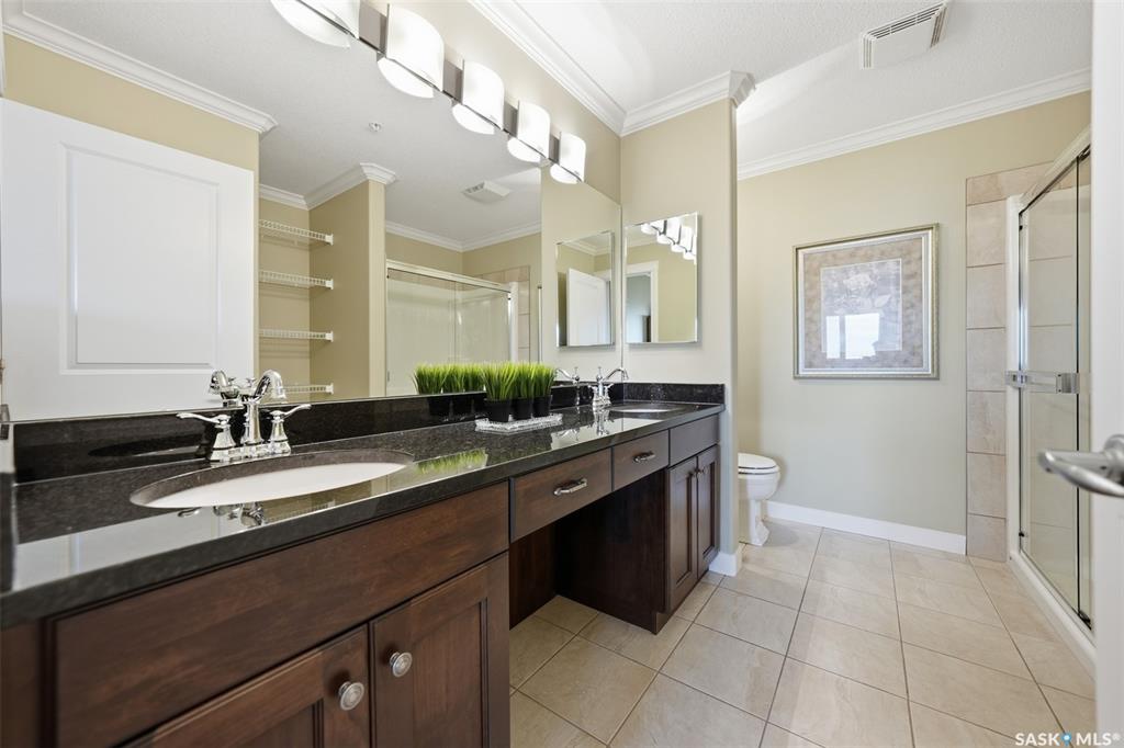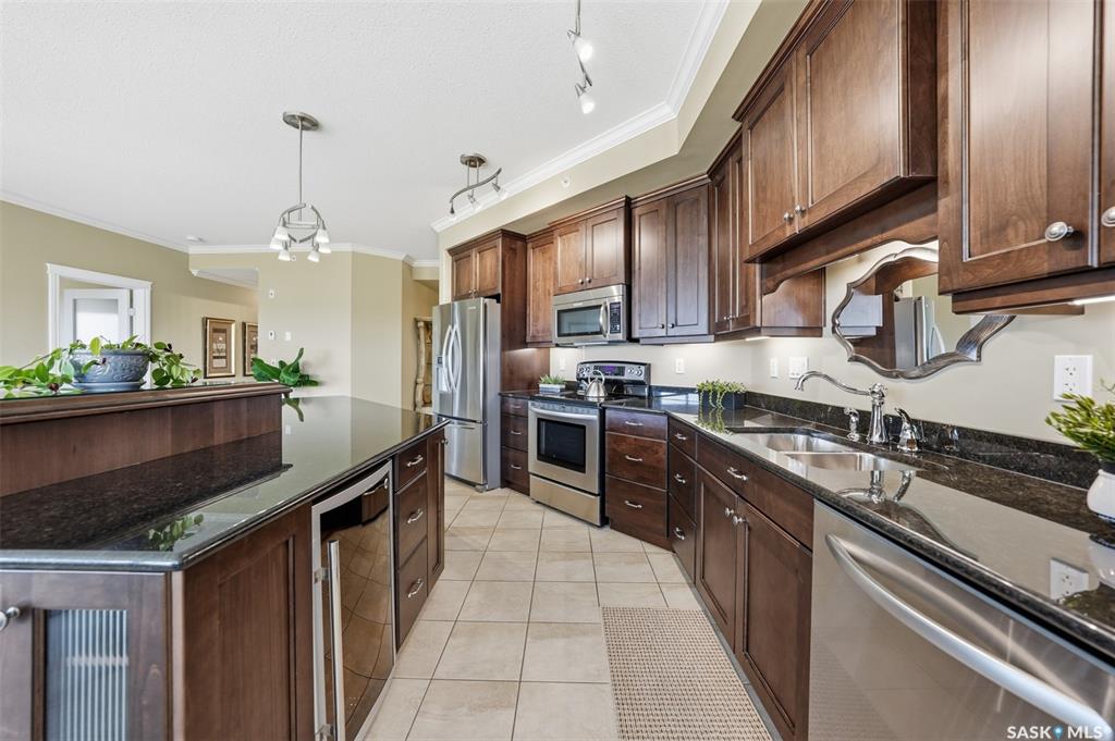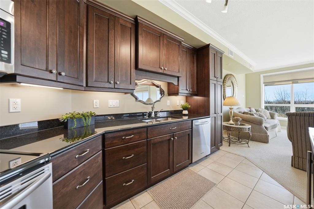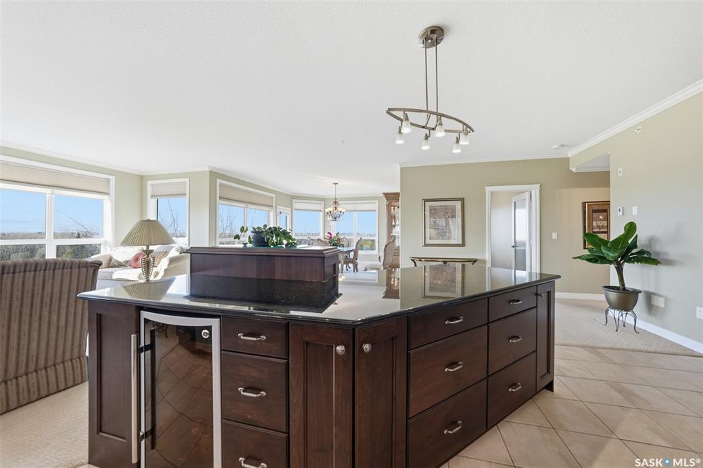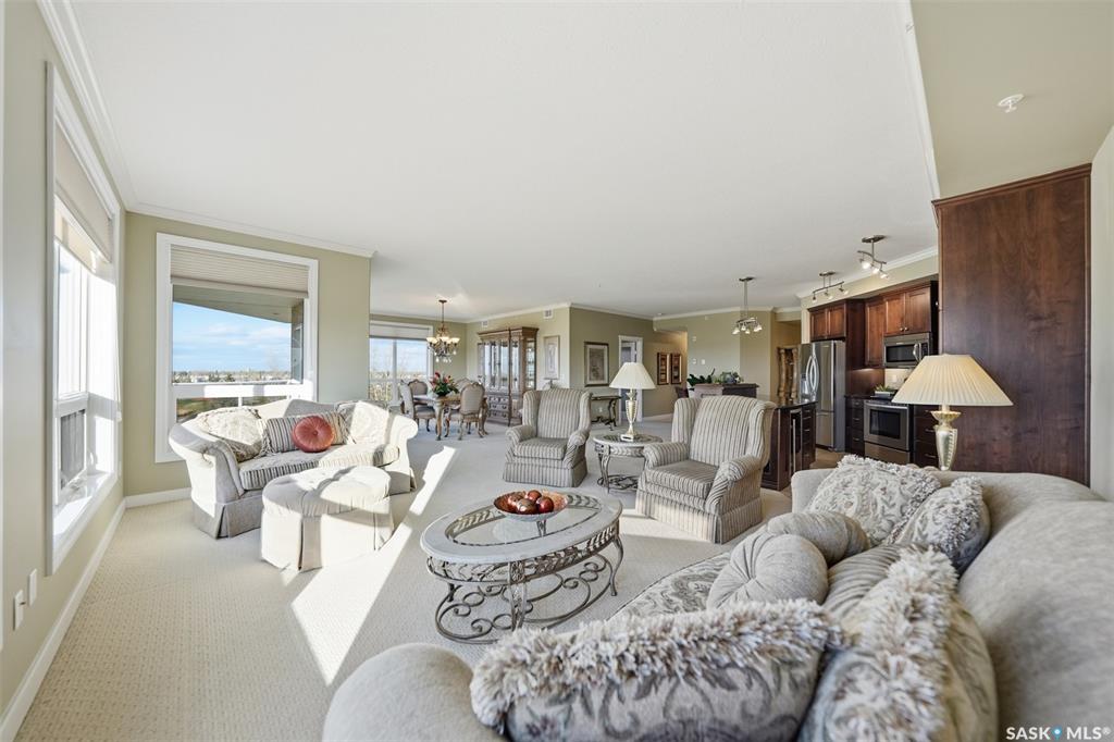 Welcome to luxury living at The Willows - Saskatoon's premier golf course community. This top floor corner unit boasts 1,854 sq.ft. with a spacious open floor plan. Soaring wall to wall windows let in natural light from the north and west sides of the building, and the wrap-around balcony showcasing beautiful views of the golf course and community. Features include custom cabinetry, granite countertops, crown mouldings, and in-floor heat. Three bedrooms (one ideal as an office). The primary bedroom offers...