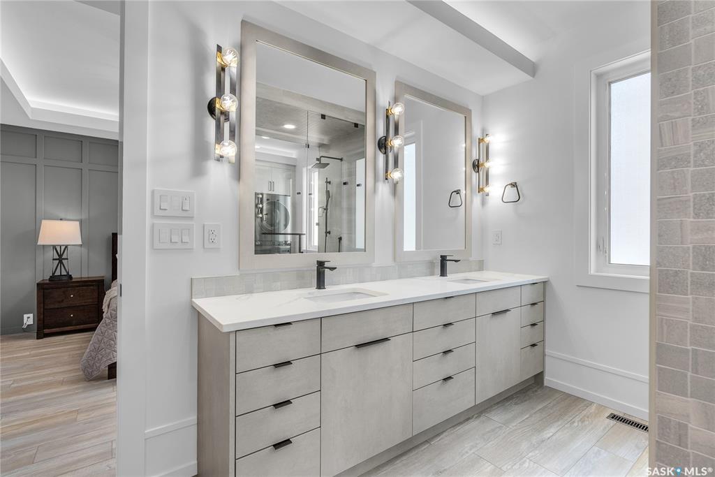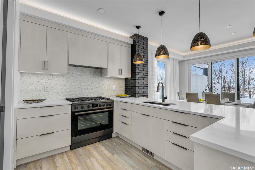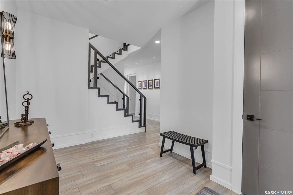 Homes by Norwood located at 428 Woolf Bend in Saskatoon’s Aspen Ridge, featuring luxury finishes and expert craftsmanship. The spacious foyer welcomes you, stained wood railings and glass staircase inserts lead to 2nd floor. Engineered Vinyl Plank flooring throughout home. The main floor boasts 8’ interior doors, 9’ ceilings with LED-lit tray designs, a great room with a brick feature wall, large south-facing windows, and a dining area with sliding doors to a 12’x12’ covered deck. The gourmet kitchen includ...