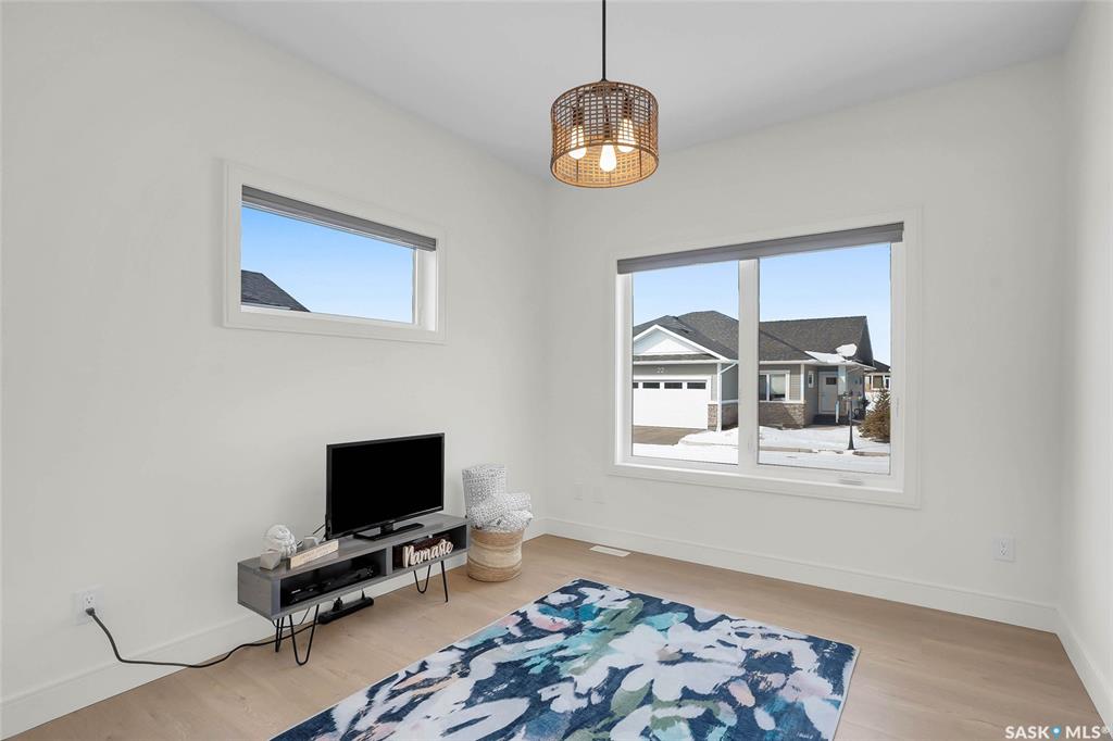 Welcome to the vibrant community of Warman, a city that offers all essential amenities and more. This immaculate end-unit townhome, bungalow style, built by a reputable Northridge builder, is ideally situated in a highly sought-after neighborhood adjacent to the golf course, offering lovely views of surrounding green space. Well maintained by its original owner, the home features thoughtful upgrades throughout, including enhanced lighting, custom living room shelving, and premium Electrolux appliances—a fri...