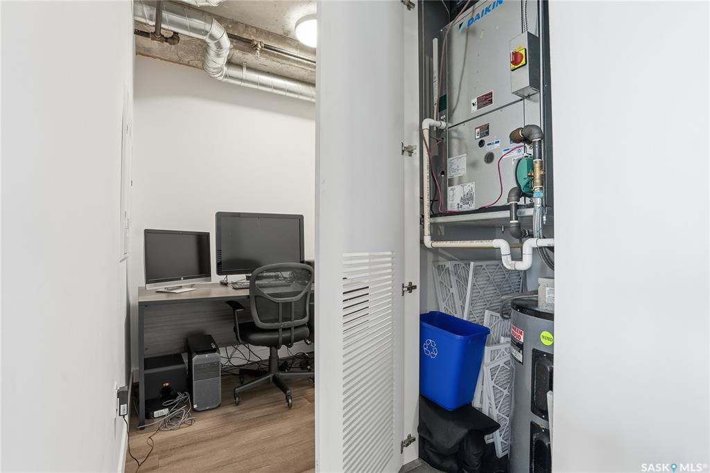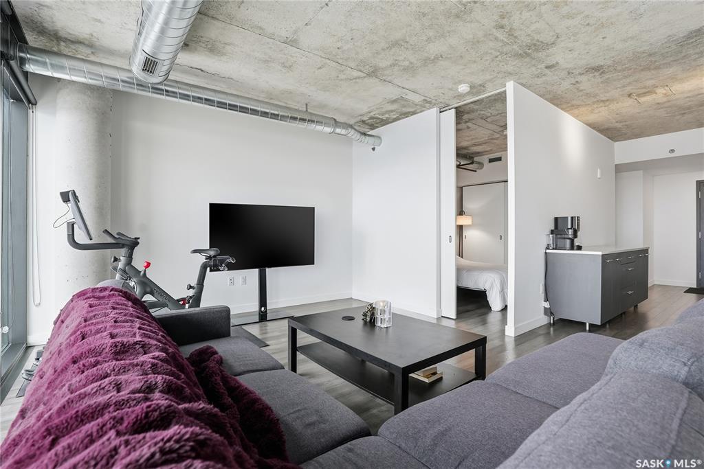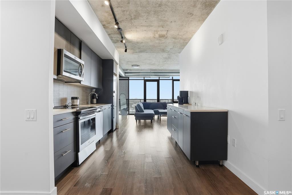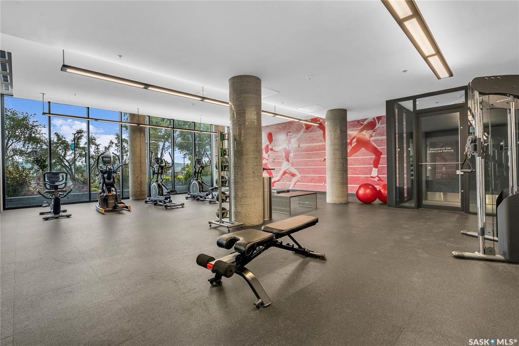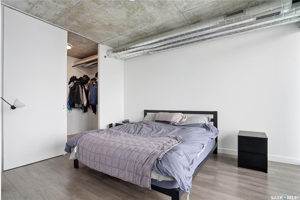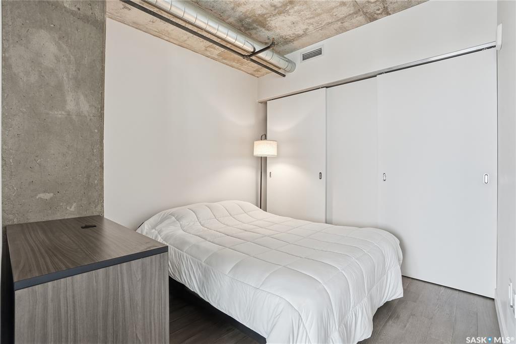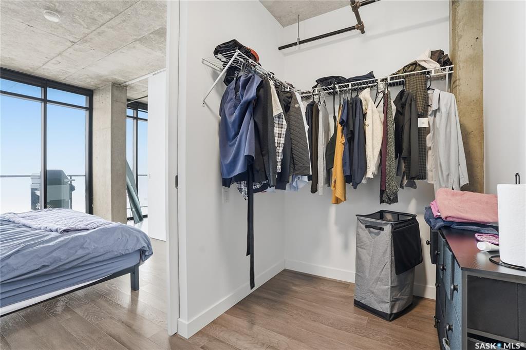 Stunning 13th floor unit at No. 1 River Landing, featuring an expansive view of Saskatoon's downtown, River Landing Park and the South Saskatchewan River. Great layout with 9 ft concrete ceilings, kitchen with quartz counters and stainless steel appliances, 2 bedrooms + den and two bathrooms. Primary bedroom has direct access to the balcony and features a walk-thru closet open to your ensuite with a tiled shower. Second bedroom has a large closet and sliding door entry. Laundry (new washer & dryer!) and add...