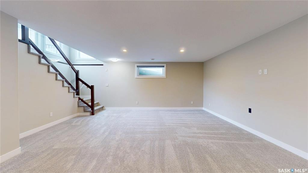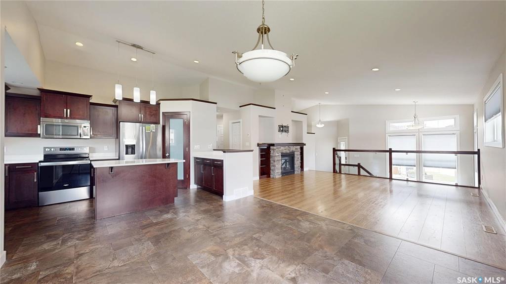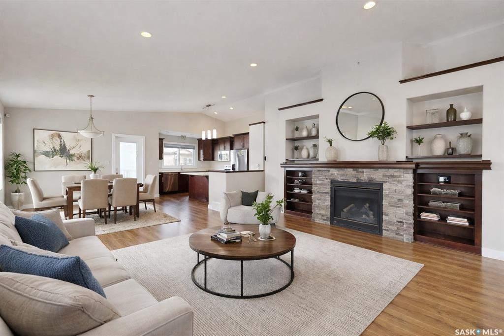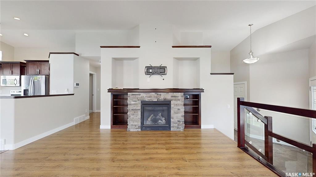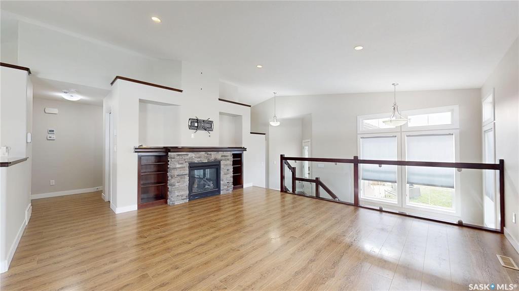 Welcome to this beautiful bi-level built on piles tucked away on a quiet bay with amazing neighbours — and sitting on one of the biggest lots in the area! Step inside to an open concept layout with a sleek glass panel rail to the basement, keeping that bright, airy vibe flowing. The spacious kitchen + dining area is perfect for gatherings or entertaining for the next rider game or upcoming holiday season. The primary bedroom will easily hold a king size bed and has a 3 piece ensuite, there is a second bedro...