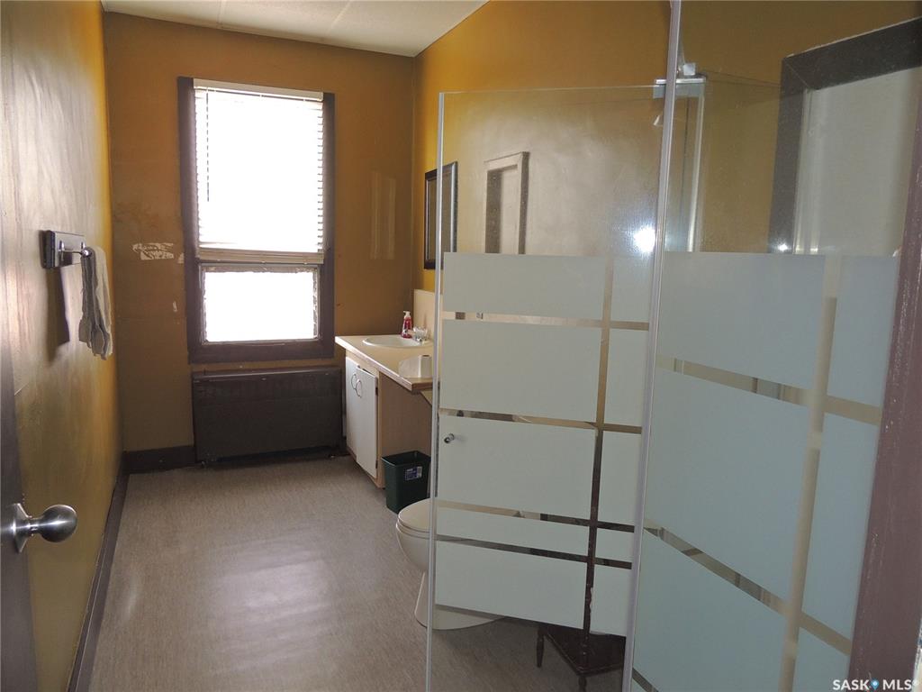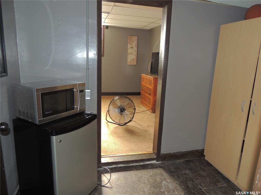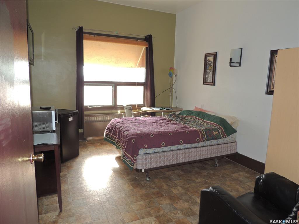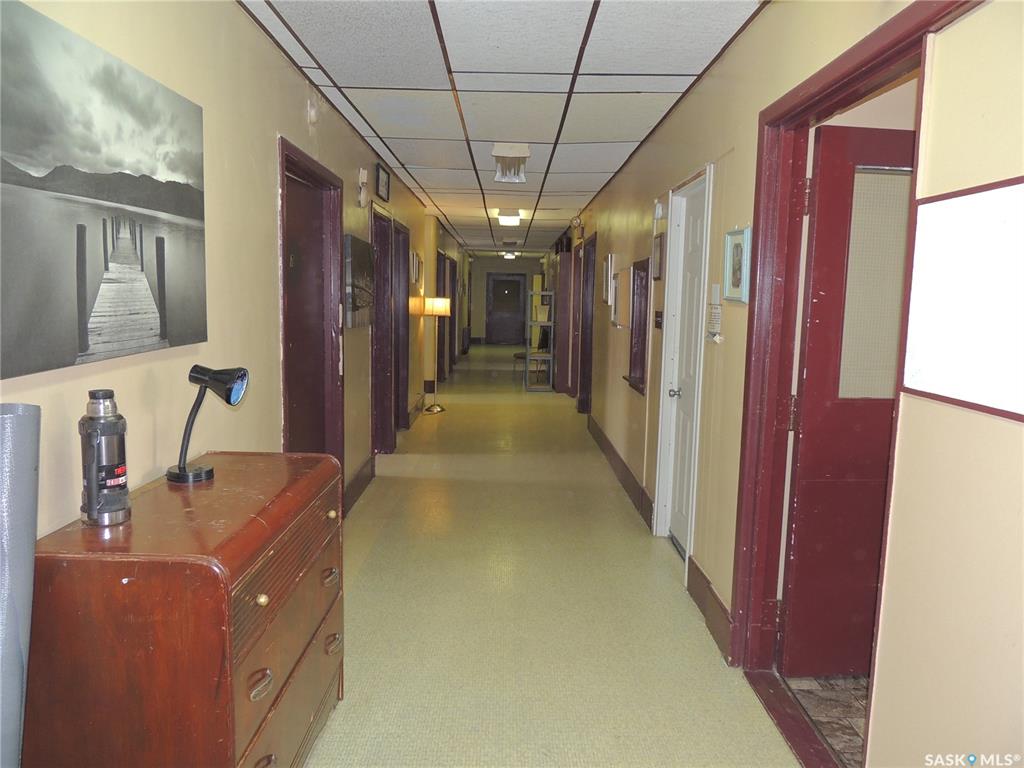 This building consists of 19 units. There is one two bedroom unit with a private bathroom and kitchen, and one one bedroom unit. There are an additional 17 private rooms with shared amenities. The building has a laundry room and kitchen on each floor. There are also shared bathrooms for the units. It is in a great location in Bienfait for ease of access to the mines and Shand power station.