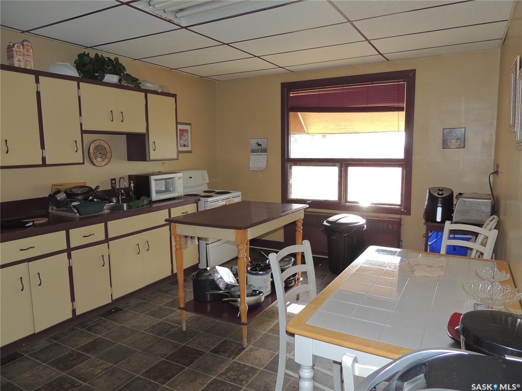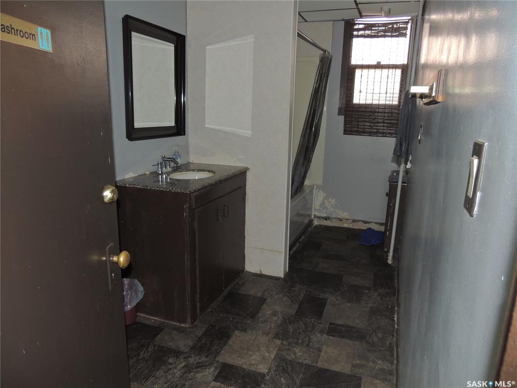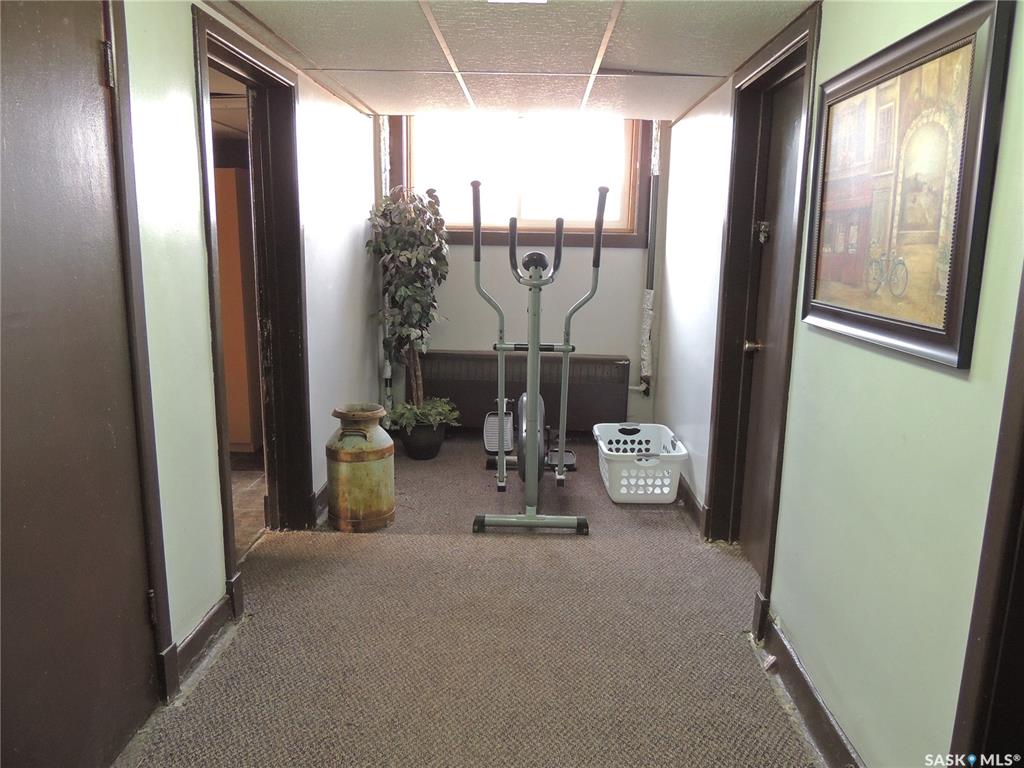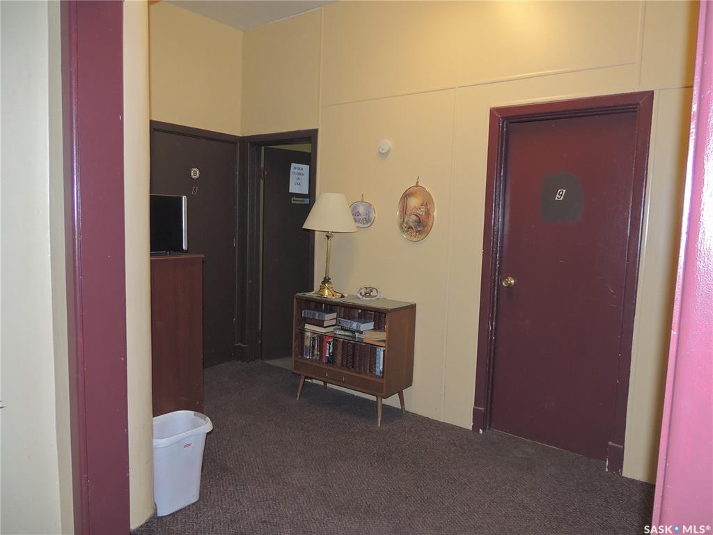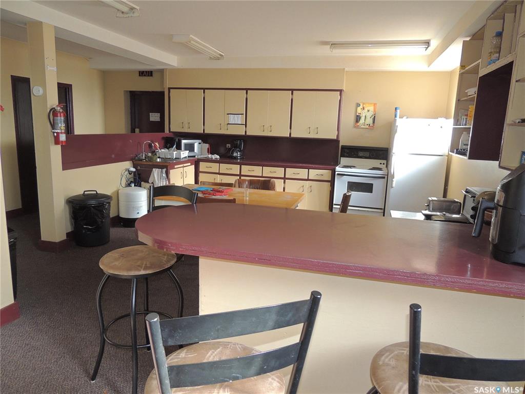 This building consists of 19 units. There is one two bedroom unit with a private bathroom and kitchen, and one one bedroom unit. There are an additional 17 private rooms with shared amenities. The building has a laundry room and kitchen on each floor. There are also shared bathrooms for the units. It is in a great location in Bienfait for ease of access to the mines and Shand power station.
