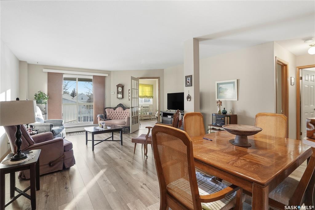 Welcome to Colony Square, ideally located in Saskatoon’s sought-after Nutana neighbourhood. This well-maintained 1 bedroom plus den condo offers a functional open-concept layout with durable LVP flooring throughout and the bright living area features direct access to a quiet balcony space. The balcony was redone about 10 years ago with new wood base and vinyl covering. The kitchen is equipped with a newer stove complete with a warming drawer and thermometer plug, dishwasher, hood fan and lots of cabinet spa...