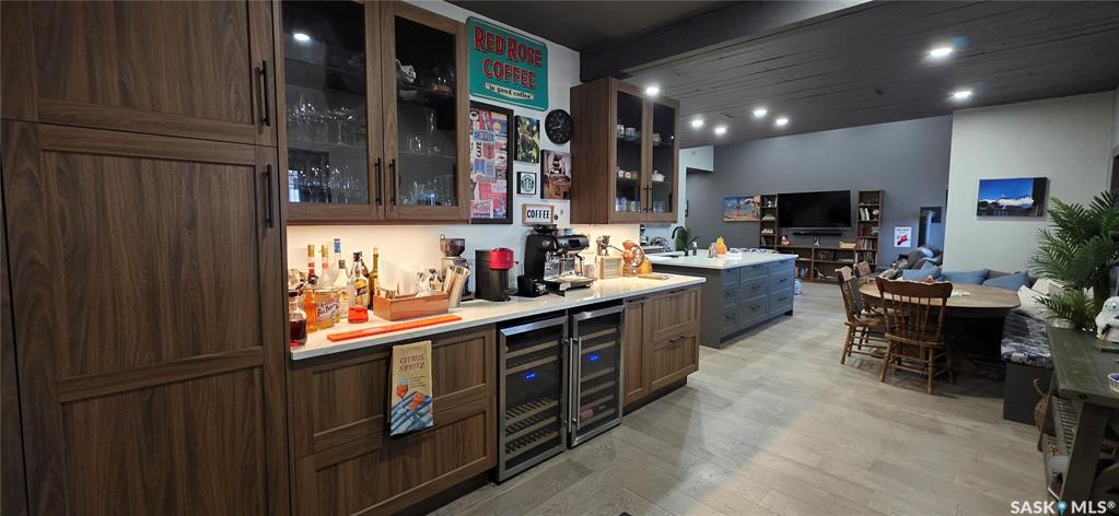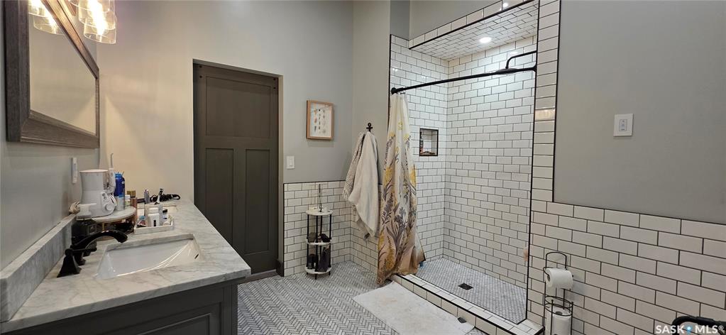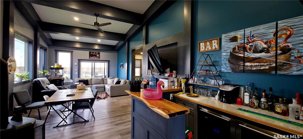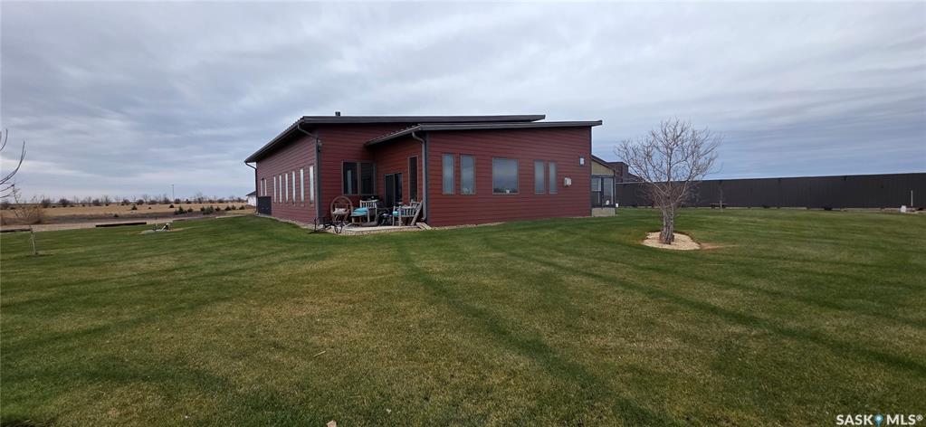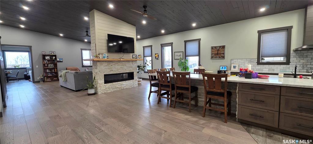 One-of-a-kind acreage located just 15 minutes from Estevan. Situated on 5 acres This 4,800 sq. ft. home offers two separate living quarters, ideal for multi-generational living, large families, or guest accommodation. The property features a total of 6 bedrooms, 4 bathrooms, and dedicated office space. Both primary bedrooms include stunning full en suite baths finished with beautiful tile flooring and tiled shower/tub accents. Interior finishes include engineered hardwood throughout the main living area...