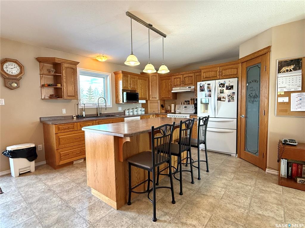 Are you looking for a pristine acreage in a great area close to the Battlefords? Check out this 12.67 acre listing located about 1/3 of a mile south of Denholm. This acreage offers a 1390 square foot raised bungalow built in 2004. The main level offers a large foyer with garage access, bright south facing living room, large dining and kitchen area, a master bedroom with three piece ensuite and walk in closet, a four piece bath, and an additional bedroom. In the lower level you will appreciate the large wind...