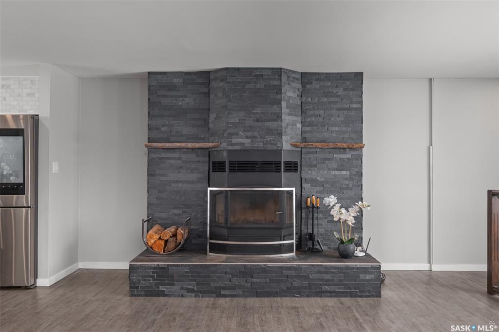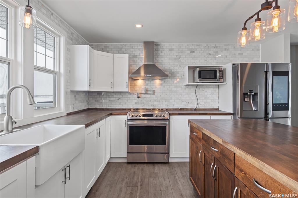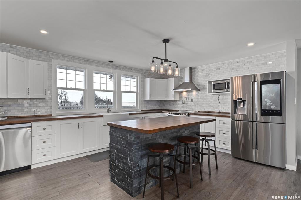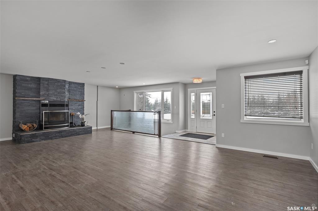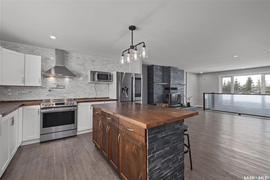Stunning 4 bedroom and 3 bathroom home set on 9.69 acres, located only 3.4km from Prince Albert! The main level is finished with beautiful vinyl plank flooring and pot lighting throughout, creating a warm and inviting atmosphere. The spacious living room is centered around a wood burning fireplace with a striking brick surround, adding character and charm to the space. The kitchen is a culinary enthusiasts dream, thoughtfully designed with high-end stainless steel appliances featuring smart technology, an a...