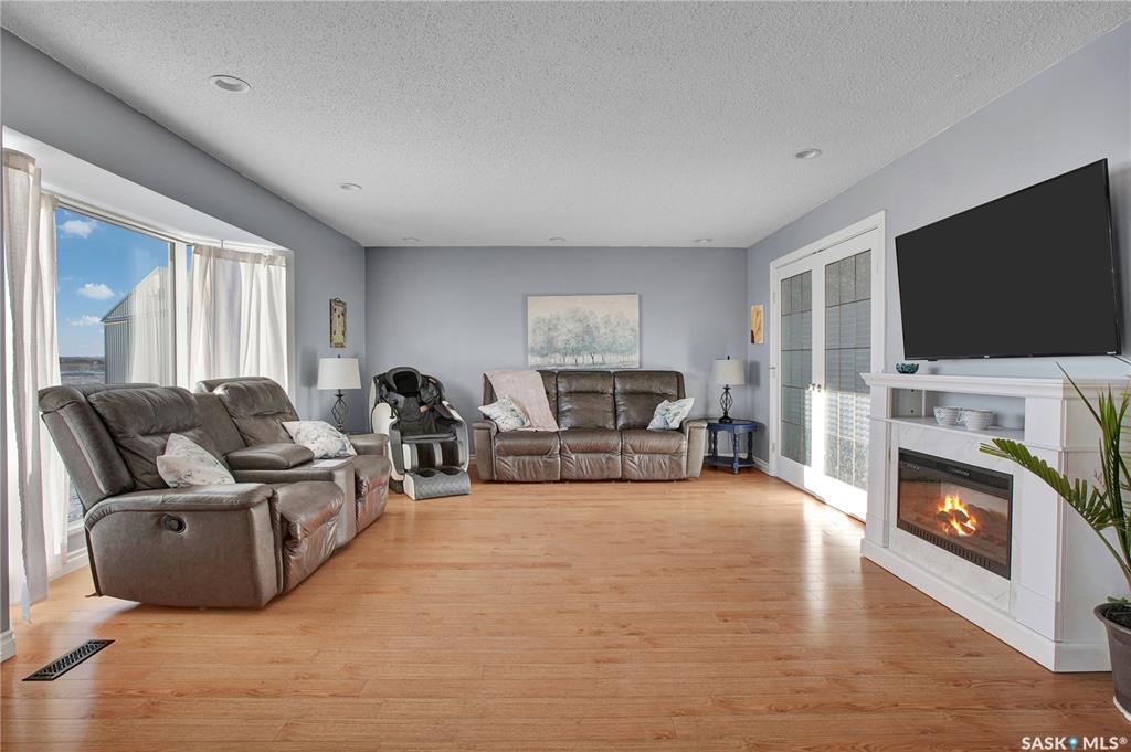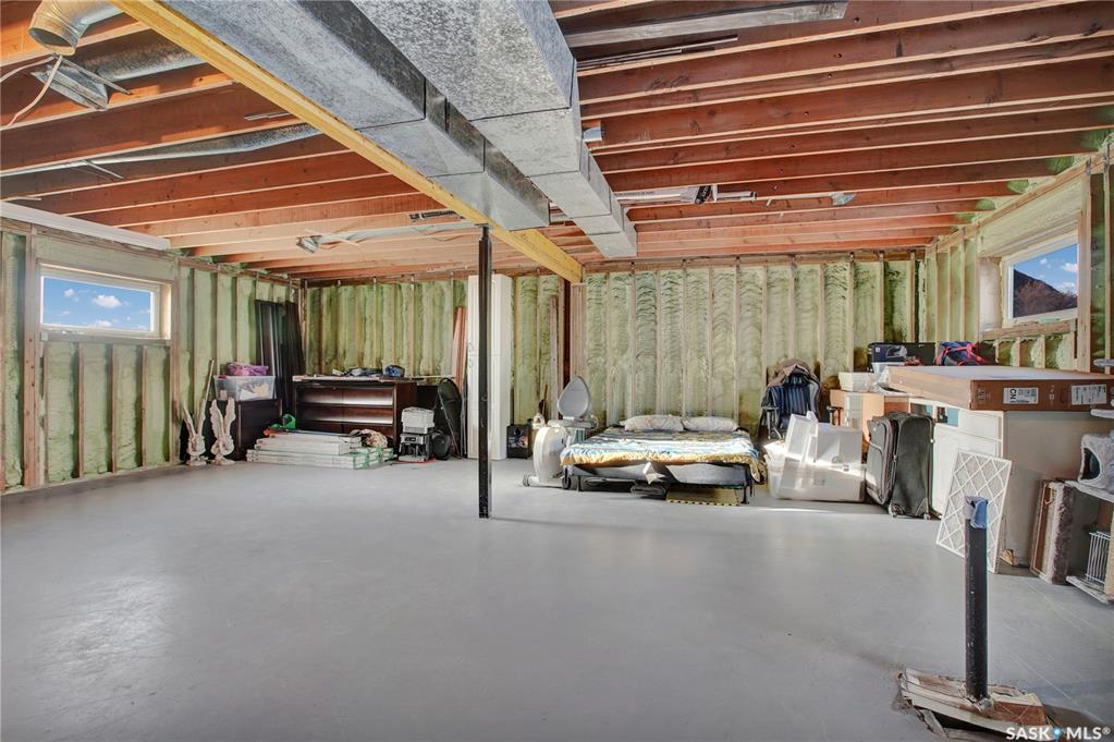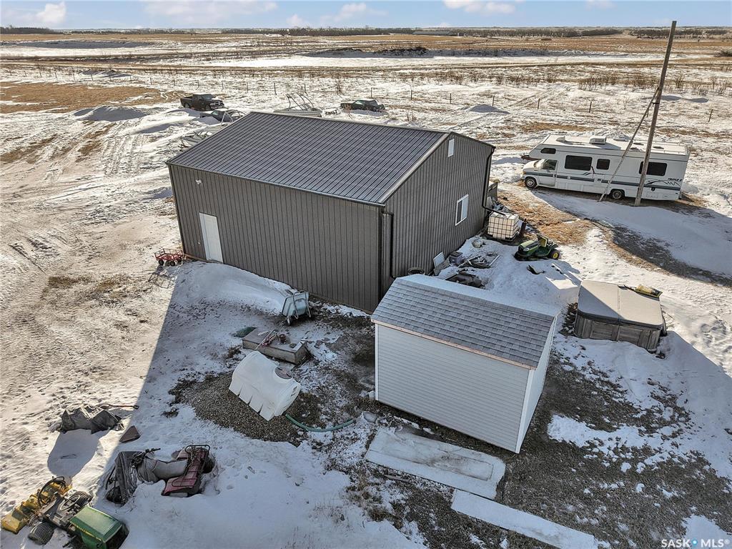 Peaceful oasis just 25 minutes South East of Saskatoon! Acreage property on 108 acres (mostly fenced). This 80's bungalow was moved onto a new concrete foundation 3 years ago. 1,120 sqft of living space above grade. Basement walls are spray foamed and the rest is open for development. Beautiful kitchen on the main level with quartz countertops, backsplash & large island. Open concept with spacious dining room leading you into the living room. Tons of natural light throughout the main floor. Beautifully reno...